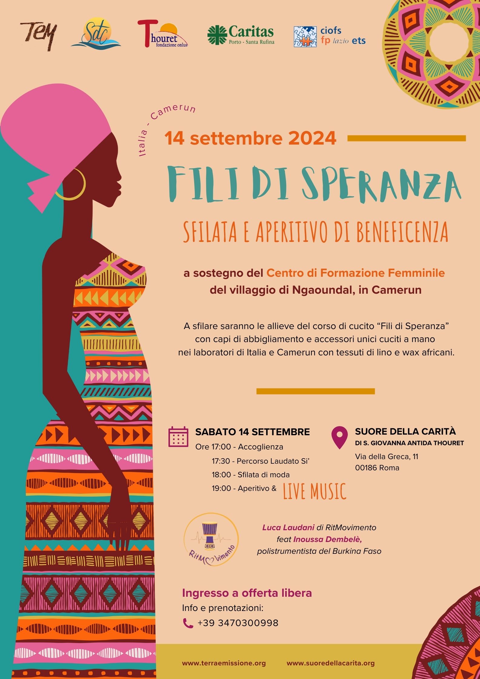 A sfilare saranno i capi realizzati nel piccolo villaggio di Ngaoundal, nel Nord del Camerun, da stiliste e allieve del Centro di formazione femminile promosso dalle Suore della Carità di Santa Giovanna Antida Thouret, che verranno indossati dalle allieve impegnate nel progetto di sartoria sociale di Terra e Missione che a Ladispoli, in provincia di Roma, sta aiutando le donne in difficoltà a “ricucire” la propria vita attraverso un percorso umano e professionale.