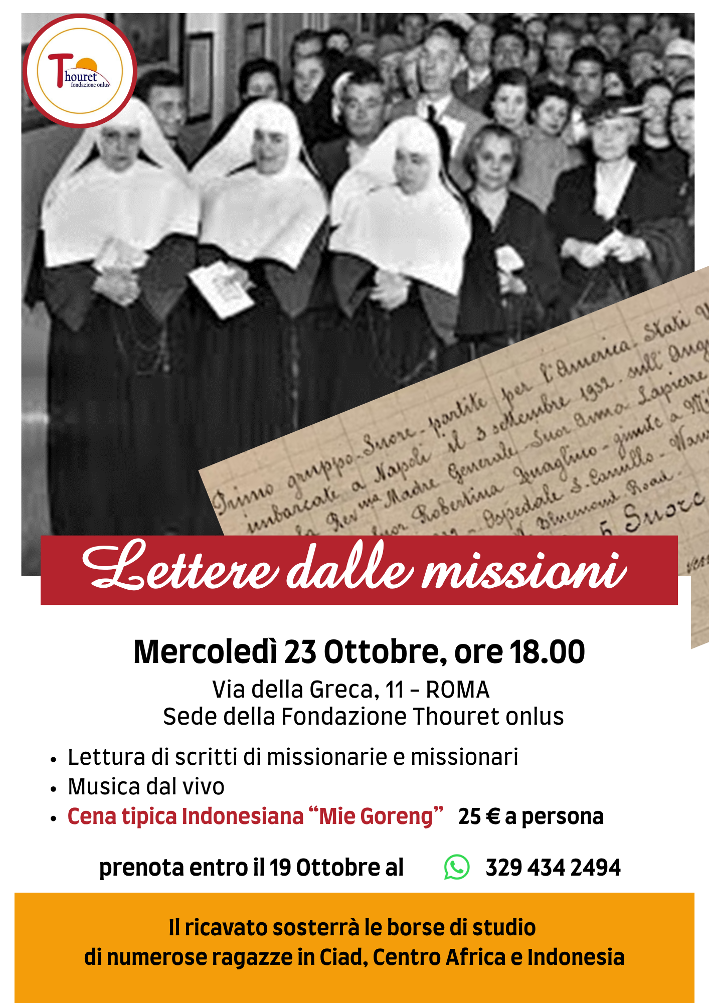 Fondazione Thouret ti invita ad una serata di ascolto degli scritti di alcune suore della Carità che hanno “attraversato i mari” per raggiungere i più poveri.