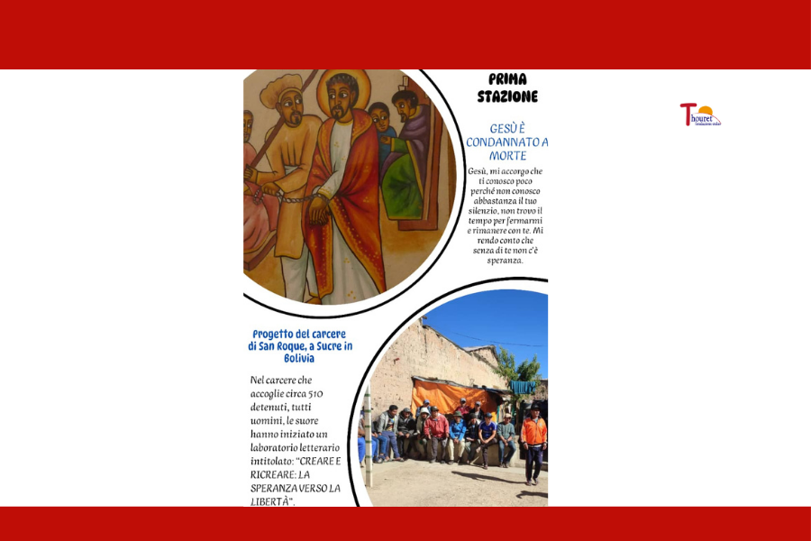 Preghiamo dicendo: Parla al mio cuore, Gesù Tu che rispondi al male col bene , Parla al mio cuore, Gesù Tu che spegni il clamore con la mitezza, Parla al mio cuore, Gesù Tu che detesti le chiacchiere e le lamentele, Parla al mio cuore, Gesù Tu che mi conosci nell’intimo, Parla al mio cuore, Gesù Tu che mi ami più di quanto io mi ami, Parla al mio cuore, Gesù Il Progetto del carcere di San Roque, a Sucre in Bolivia Nel carcere che accoglie circa 510 detenuti, tutti uomini, le suore hanno iniziato un laboratorio letterario intitolato: “CREARE E RICREARE: LA SPERANZA VERSO LA LIBERTÀ”, un corso di letteratura aperto a tutti i carcerati che desiderano parteciparvi. A coloro che si impegnano assiduamente e fedelmente in questo percorso formativo viene consegnato un attestato che costituisce per il detenuto una sorta di “redenzione” cioè la possibilità di avere uno sconto di pena. Padre Nostro…. Ave o Maria Gloria