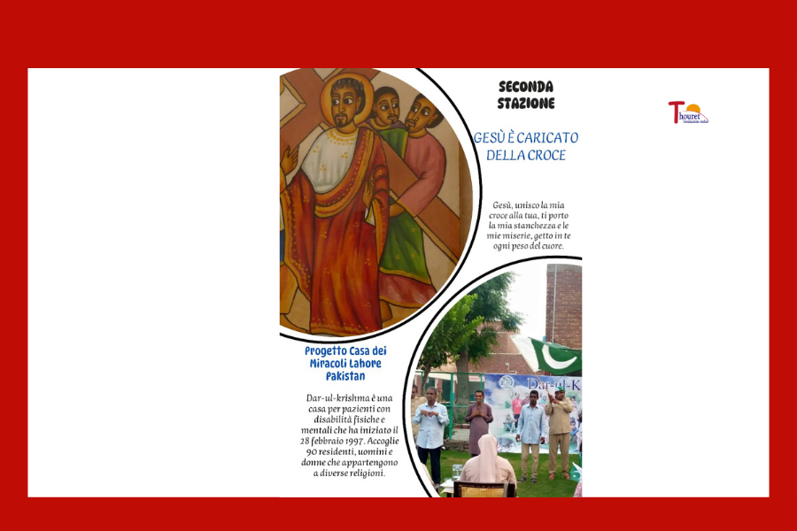 Con la mia storia Io vengo a te, Signore Con le mie fatiche Io vengo a te, Signore Con i miei limiti e le mie fragilità Io vengo a te, Signore Con le mie paure Io vengo a te, Signore Riponendo ogni fiducia nel tuo amore Io vengo a te, Signore Progetto Casa dei Miracoli Lahore Pakistan
