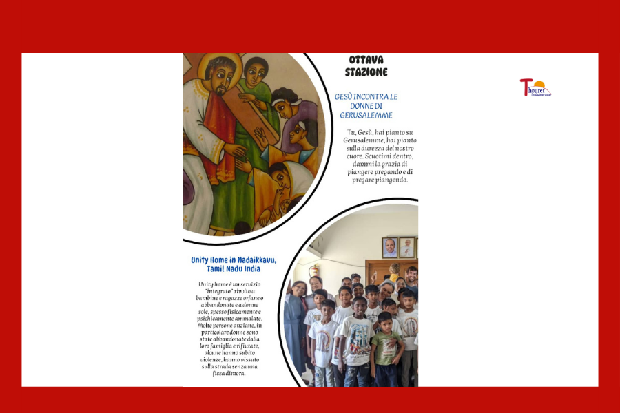 Gesù, chi ti segue fino alla fine lungo la via della croce? Non i potenti, che ti aspettano sul Calvario, non gli spettatori che stanno lontano, ma le persone semplici, grandi ai tuoi occhi e piccole a quelli del mondo. Sono le donne, a cui hai dato speranza: non hanno voce ma si fanno sentire. Gesù, le donne che incontri si battono il petto e fanno lamenti su di te. Non si piangono addosso, ma piangono per te, piangono sul male e sul peccato del mondo. Piango le mie falsità e la mia incostanza? Di fronte alle tragedie del mondo il mio cuore è di ghiaccio o si scioglie? Come reagisco alla follia della guerra, a volti di bimbi che non sanno più sorridere, a madri che li vedono denutriti e affamati e non hanno più lacrime da versare? Tu, Gesù, hai pianto su Gerusalemme, hai pianto sulla durezza del nostro cuore. Scuotimi dentro, dammi la grazia di piangere pregando e di pregare piangendo.